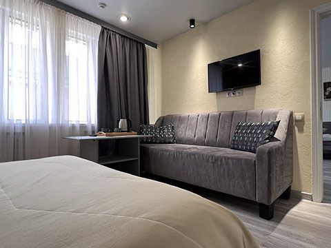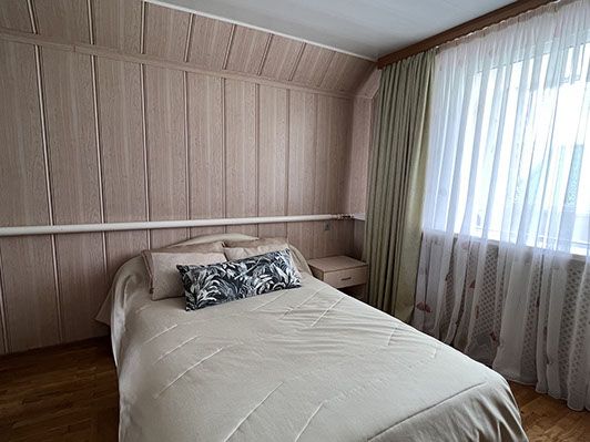 Для комфортного проживания гостям предлагаются отдельные номера или возможность аренды коттеджа целиком. В номерах установлена удобная мебель, а в ванных комнатах есть душевые кабины, наборы полотенец и косметические принадлежности.
